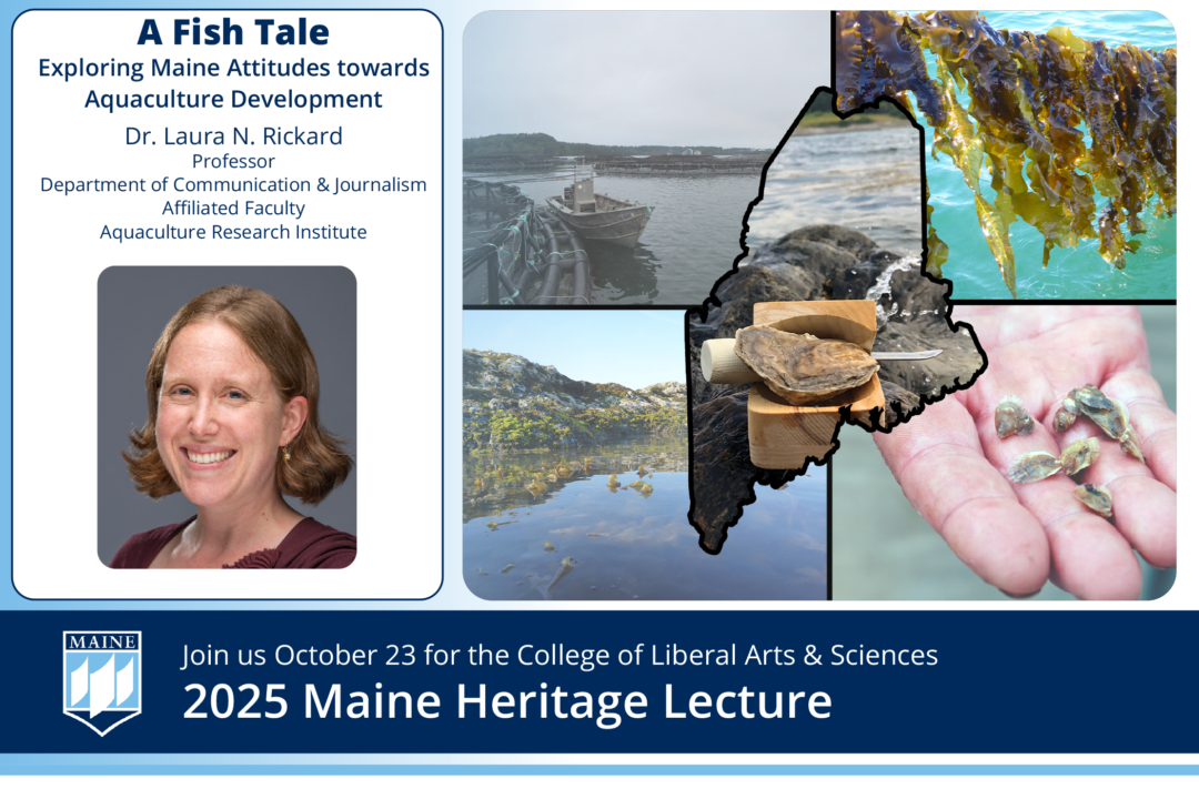 In this talk, Dr. Rickard will discuss her years-long research into Mainers’ opinions about aquaculture. Drawing on interviews, surveys, news media analysis, and community-engaged approaches, she will explore what drives their perceptions and what the discussion about recent land-based aquaculture proposals tell us about Mainers’ attitudes toward aquaculture, the state’s fishing and farming heritage, and environmental change.